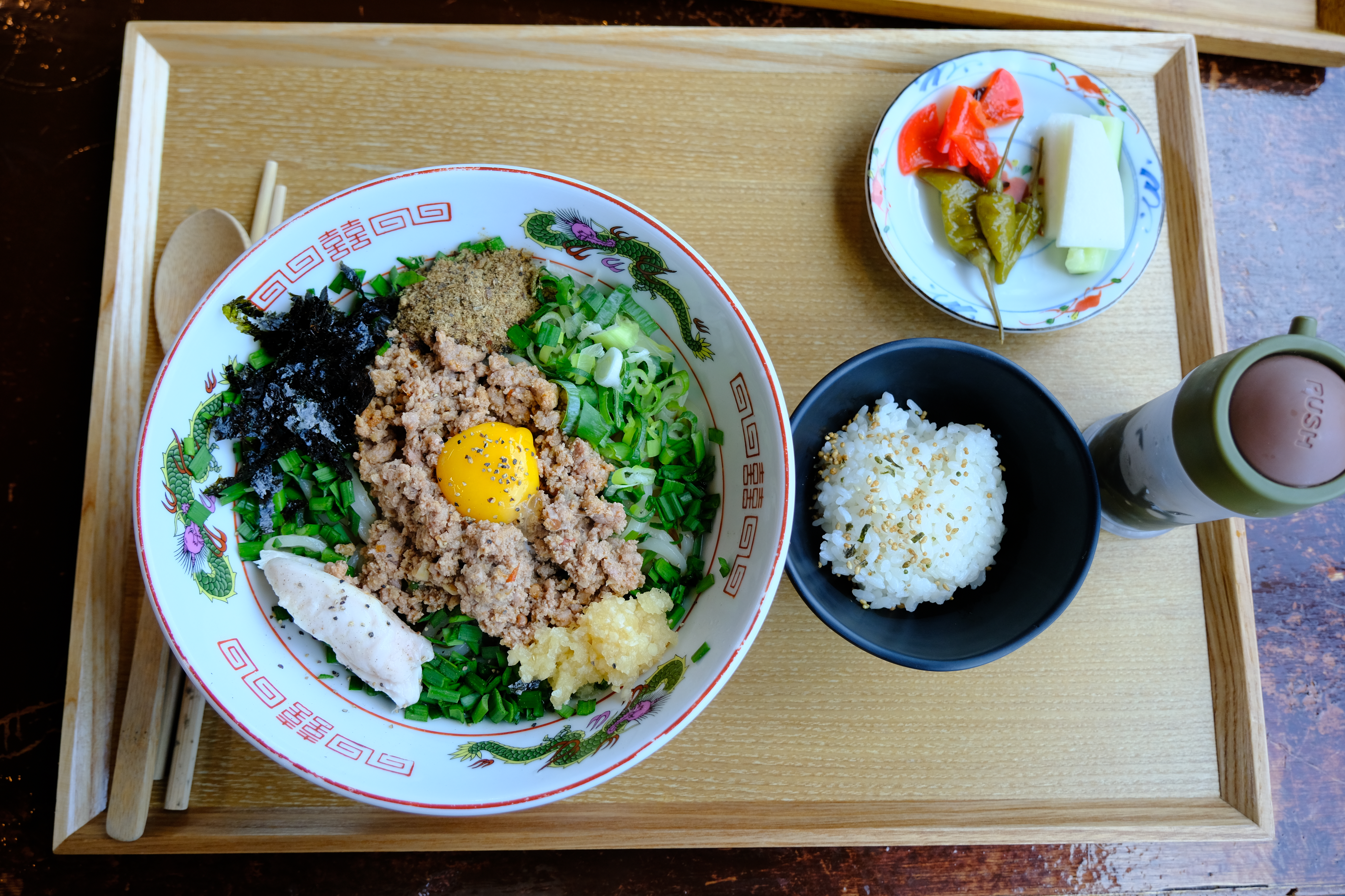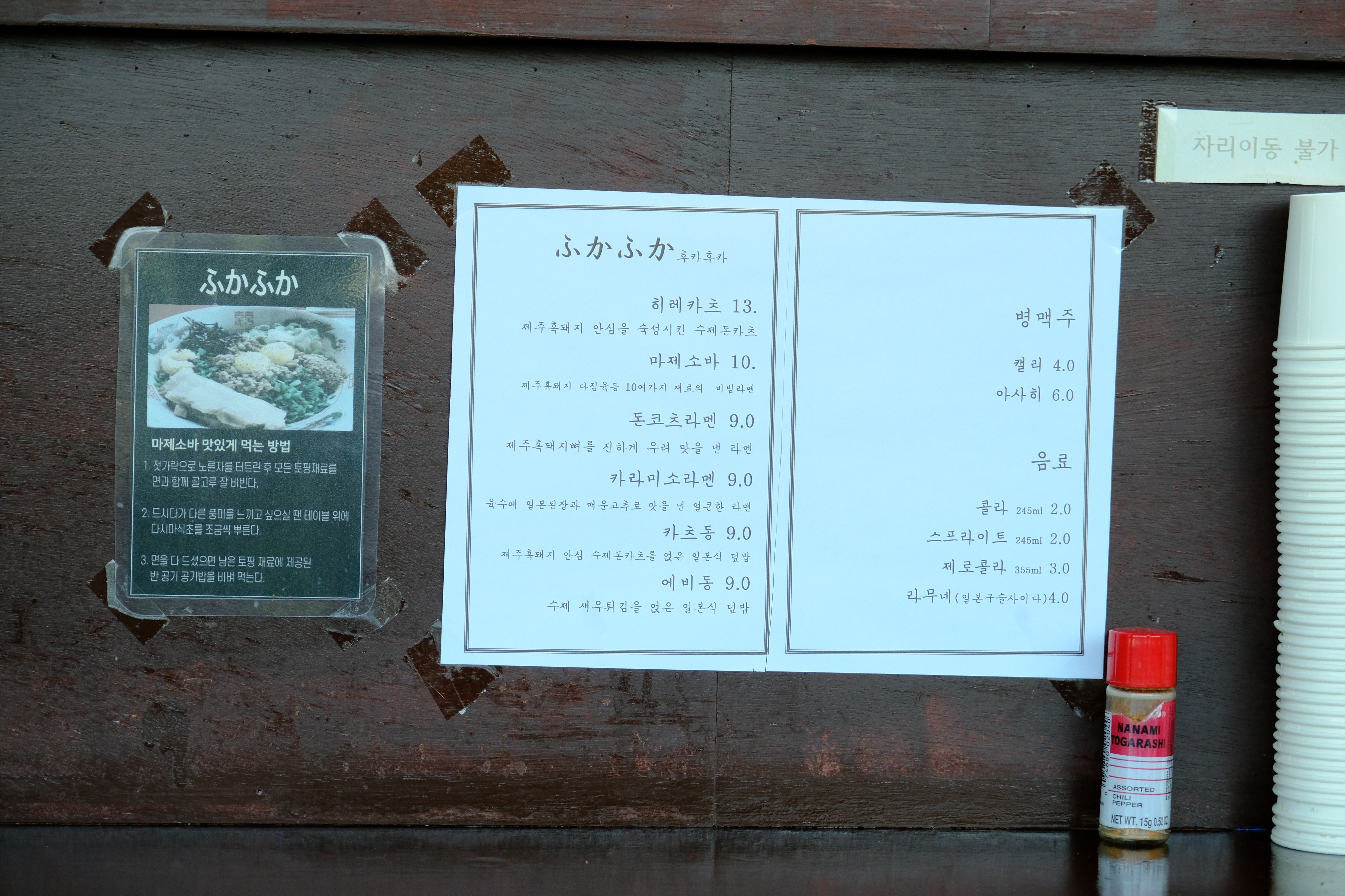 아이와 같이 먹어야 하기 때문에 맵지 않은 마제소바와 돈코츠 라멘을 주문합니다.