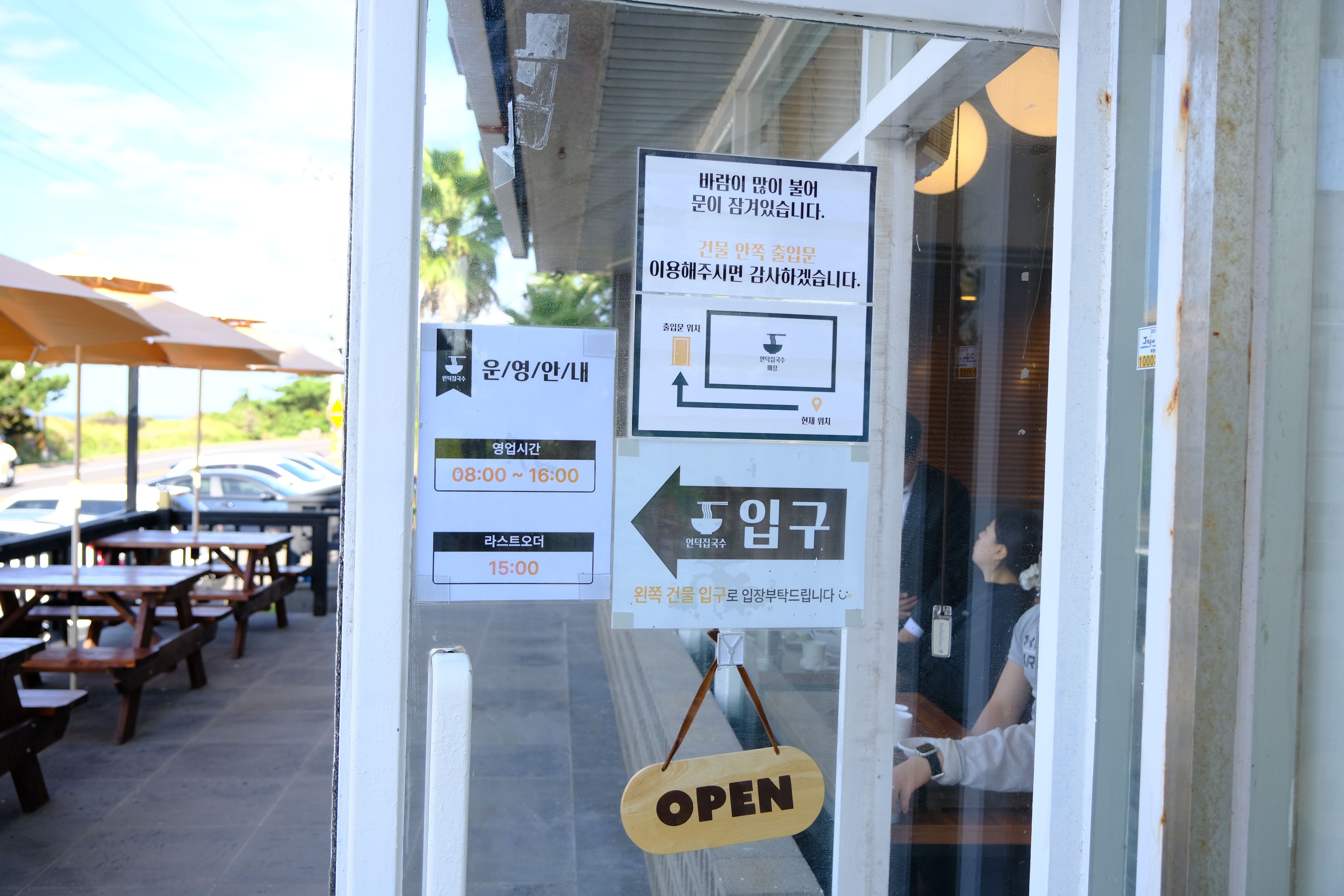 야외에도 테이블이 있으며 바다가 잘 보입니다.